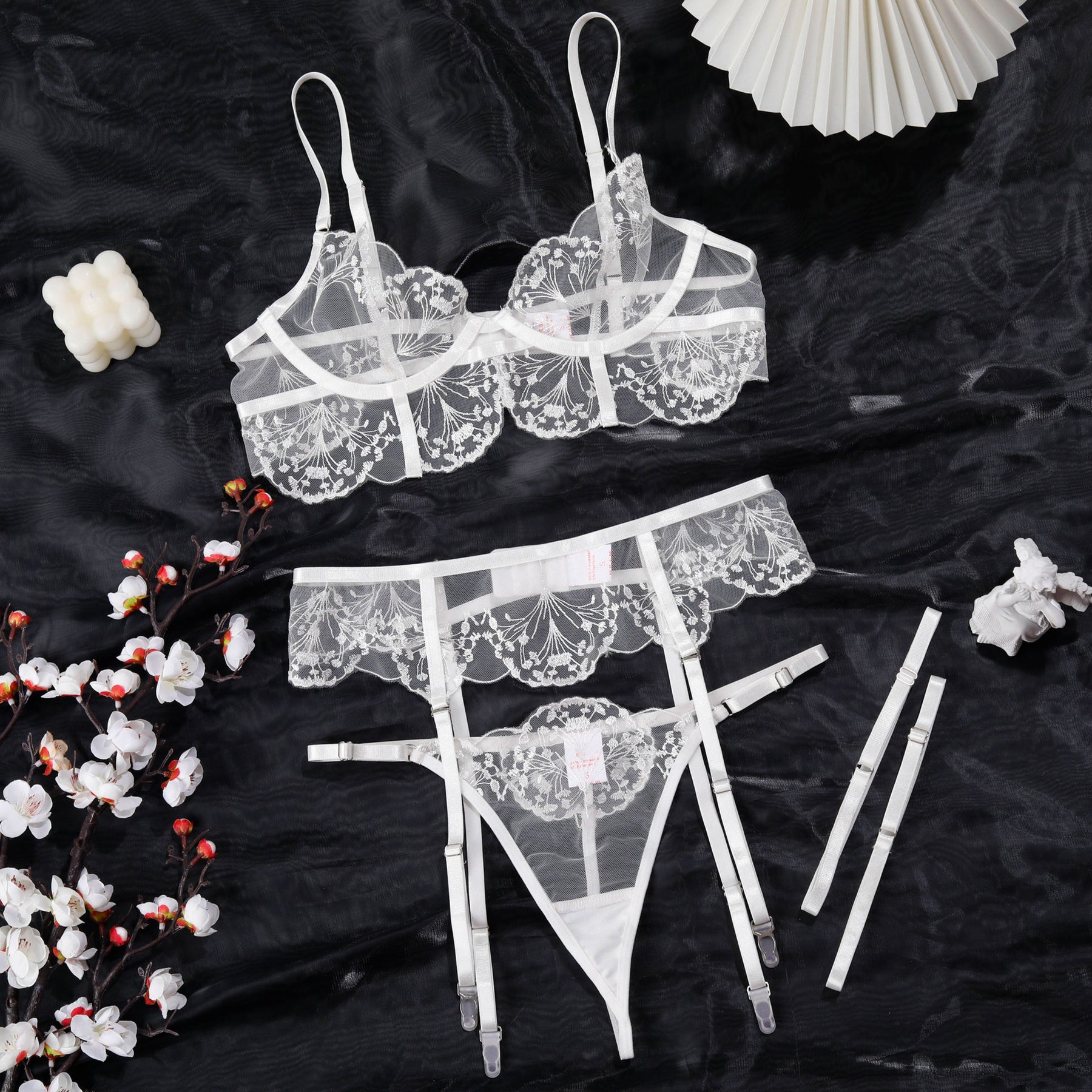 French Sheer Embroidered Lace Lingerie Set