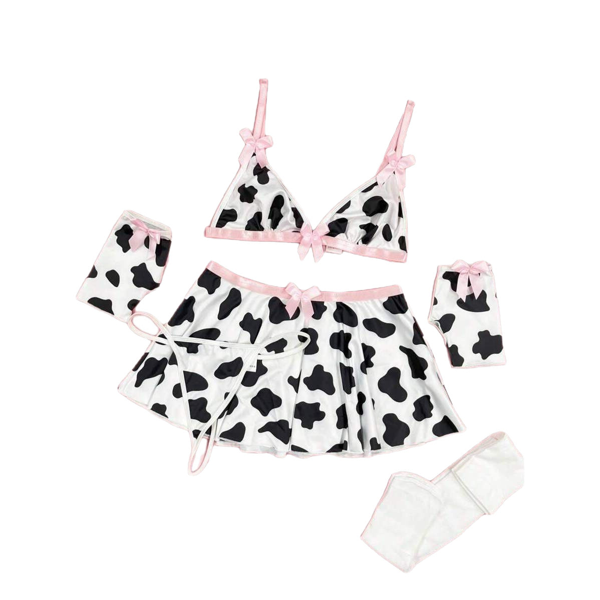 This cow-print mini skirt lingerie set blends playful innocence with bold seduction, made to tease, tempt, and turn heads.