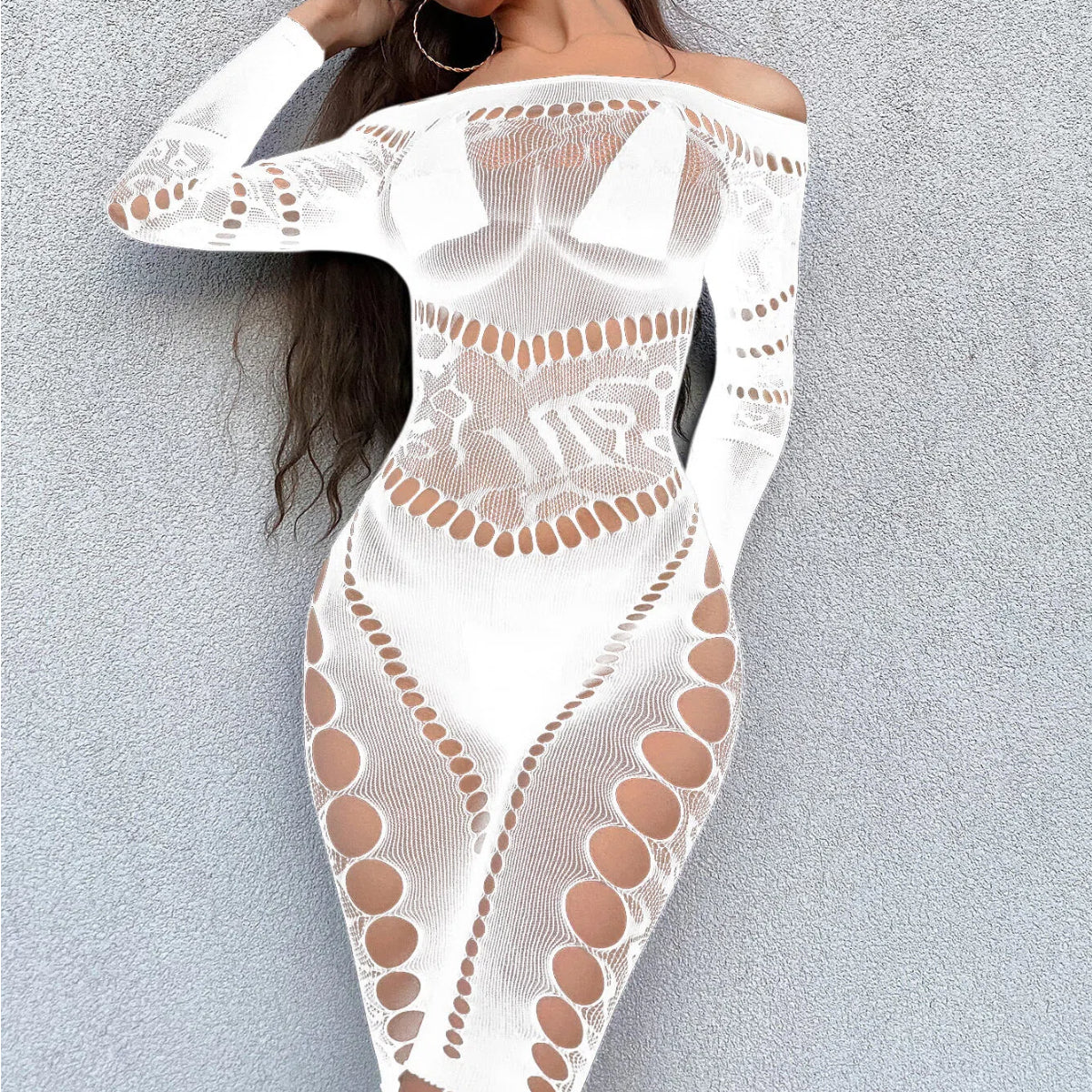 Sexy Fishnet Long Sleeve Bodysuit Dress