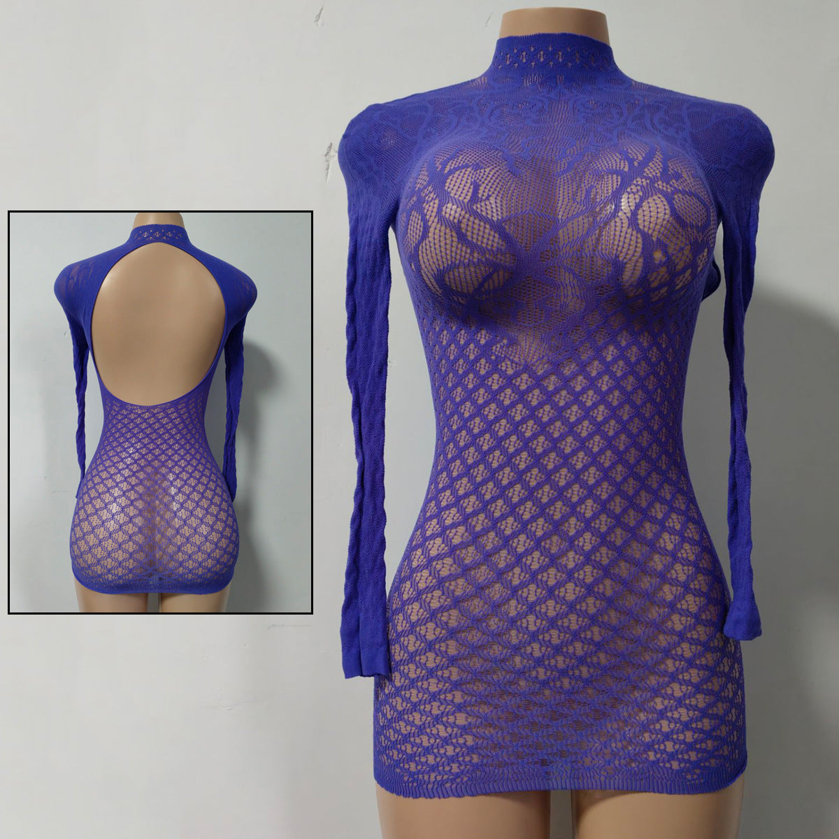 The ultra-stretch mesh hugs your body in all the right places while the daring open-back and hip-cut design showcase your irresistible curves.