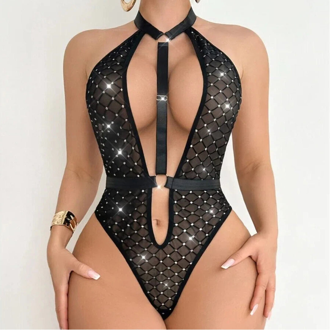 Polka Dot Lace Backless Bodysuit – Sexy Sheer Texture Lingerie