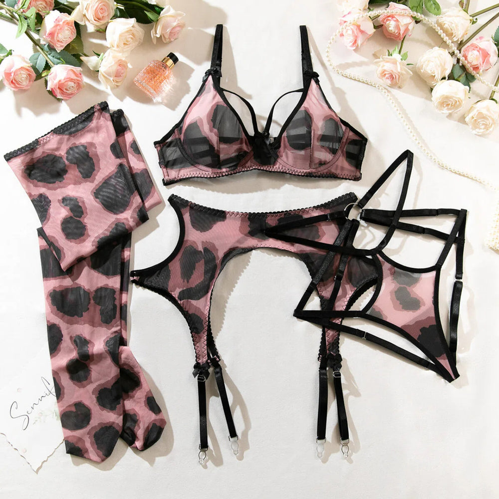 Leopard Print Lingerie 4-Piece Set